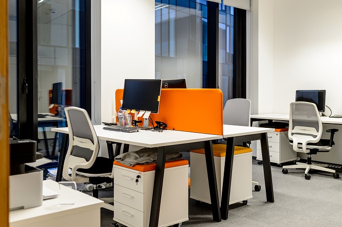 „Modnym odwzorowaniem koloru szarego w materiale jest użycie betonu. Świetnie sprawdza się on w wykończeniu biur o młodym i nowoczesnym charakterze. Dobrze współgra też z innymi kolorami” – mówi Łukasz Kalinowski, który odpowiadał za realizację projektu po stronie Tétris.