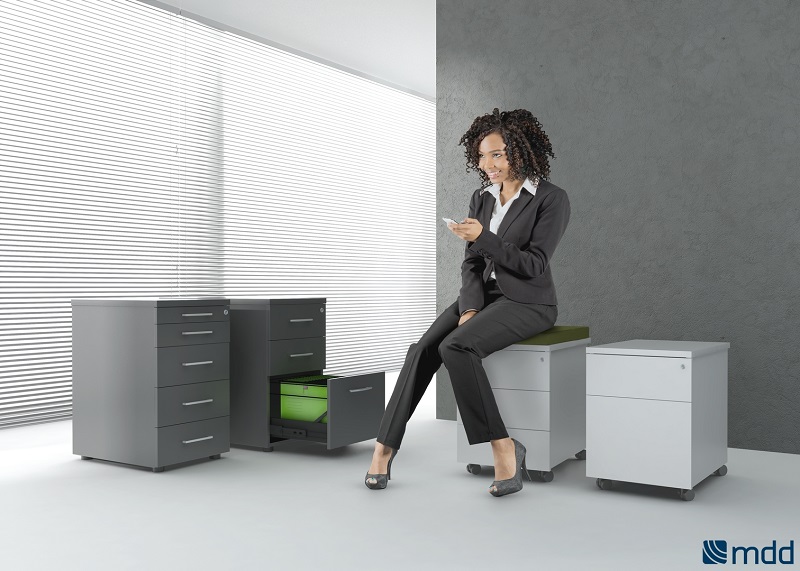 Kluczowe są meble, które zapewnią odpowiednią postawę ciała podczas siedzenia i dadzą się elastycznie dostosować do indywidualnych potrzeb. Źle dobrane wyposażenie biur to niestety w Polsce plaga. Według badań[2] aż 70% Polaków odczuwa dyskomfort fizyczny w pracy lub w szkole! To realny i masowy problem, który odbija się nie tylko na zdrowiu pracowników, ale także jakości pracy. Stąd budując przewagę konkurencyjną i pozytywny wizerunek pracodawcy warto dołożyć wszelkich starań, aby siedziba firmy była miejscem przyjaznym dla pracowników, gdzie w komfortowych i zdrowych warunkach mogą się oni koncentrować na swoich obowiązkach. Pod tym kątem warto zwrócić uwagę na blaty z regulowaną wysokością czy ergonomiczne fotele. Zadbanie o odpowiednie ułożenie kręgosłupa oraz niwelowanie napięć mięśni prowadzących np. do bólu karku, to powinien być jeden z istotniejszych punktów przy wyborze foteli i krzeseł do biura. Istotny jest także ład i porządek, który naturalnie pozwala lepiej organizować samą pracę. Z myślą o tym doskonałym rozwiązaniem są przykładowo specjalne kontenery pozwalające w łatwy i przejrzysty sposób trzymać dokumentację czy też rzeczy osobiste. Otaczający nas bałagan to przecież prosty przepis na niepotrzebne zdenerwowanie i wprowadzenie chaosu, co siłą rzeczy odbija się na jakości pracy.