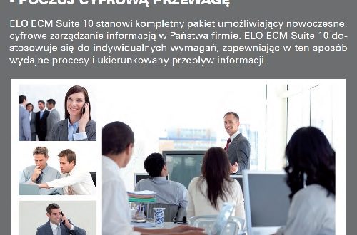 ELO ECM Suite 10 stanowi kompletny pakiet umożliwiający nowoczesne, cyfrowe zarządzanie informacją w Państwa firmie. ELO ECM Suite 10 dostosowuje się do indywidualnych wymagań, zapewniając w ten sposób wydajne procesy i ukierunkowany przepływ informacji.