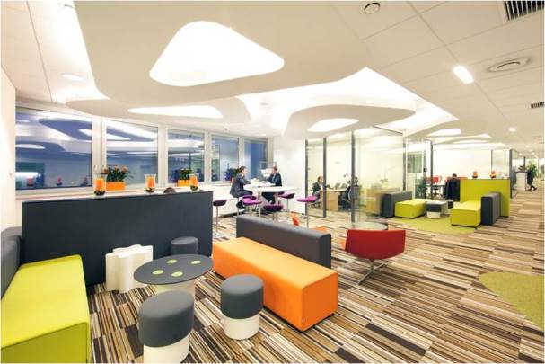 Taki pracownik nie potrzebuje wielkiego biurka, na którym gromadzi stosy papierowych dokumentów i przy którym spędza większość dnia. On potrzebuje znacznie więcej, za to bardziej zróżnicowanej przestrzeni. Musi mieć do dyspozycji miejsce na małe kameralne spotkania i poufne rozmowy. Na spotkania warsztatowe i meetingi kreatywne potrzebuje większych, nieformalnych sal, gdzie w zespole wypracuje nowe śmiałe koncepcje. Po to, by w spokoju komunikować się ze światem potrzebuje sal na wideo- i telekonferencje. Odpoczywa i spędza też czas na rozmowach w niemal klubowych chilloutach i kawiarnianych tea-roomach. Te wszystkie elementy mają ogromny wpływ na to, co może on stworzyć.