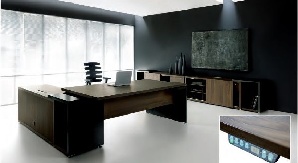 Dwa rodzaje biurek , w wersji podstawowej i wzbogaconej o charakterystyczną szafę, umożliwiającą aranżowanie zarówno małych, jak i dużych przestrzeni gabinetowych według indywidualnych potrzeb Klientów. Struktura zastosowania materiału, dostępnego w dwóch kolorach: jasny i ciemny platan, w połączeniu z lakierowanymi elementami doskonale podkreśla prestiż oraz indywidualizm tej kolekcji.
