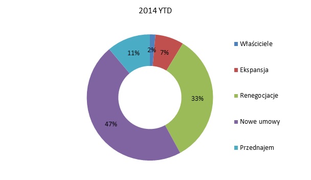 W ciągu ostatnich trzech lat, renegocjacje miały istotny udział w całkowitej ilości wynajętej powierzchni biurowej w Warszawie. W 2014 roku w pierwszych 3 kwartałach w stolicy wynajęto 426.000 mkw. powierzchni biurowej, z czego renegocjacje stanowiły 33%, czyli 142.000 mkw. Łącznie  zarejestrowaliśmy 106 takich transakcji.