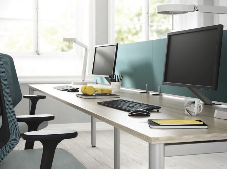 Seria stołów Nano pozwala na dostosowanie ich do preferowanego sposobu pracy i użytkowania. Biurka można łączyć, co zapewnia więcej przestrzeni w grupie zarówno naprzeciwko, jak i obok siebie.