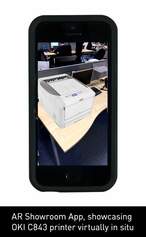 OKI Augmented Reality (AR) Showroom jest pierwszą aplikacją z rozszerzoną rzeczywistością wykorzystywaną do uświadomienia sprzedawcom detalicznym potencjału drukowania w sklepie w celu zwiększenia zaangażowania klientów i podniesienia wartości koszyka