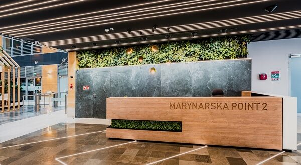 Potrzeby najemców biurowców ewoluują, na korzyść zmienia się także infrastruktura Biznesowego Mokotowa w pobliżu Marynarska Point 2. Dziś wartością dodaną dla budynku jest wykorzystanie lobby jako miejsca, w którym można chwilę popracować, odpocząć lub odbyć nieformalne spotkanie. Szczególnie zależało nam na naturalnej zieleni, która pozytywnie wpływa na samopoczucie przebywających w pobliżu osób, a także pomaga dbać o dobrą jakość powietrza. Potrzebowaliśmy w strefach wspólnej po prostu nowej jakości. Efekt prac zdecydowanie zachęca do spędzania tu czasu.