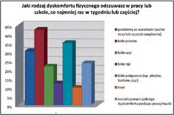 Ponad 70% Polaków odczuwa dyskomfort fizyczny w pracy lub w szkole. Najczęściej dokuczają im bóle pleców, barków oraz problemy ze wzrokiem. Znaczny wpływ na to ma organizacja i wyposażenie miejsc pracy i nauki.