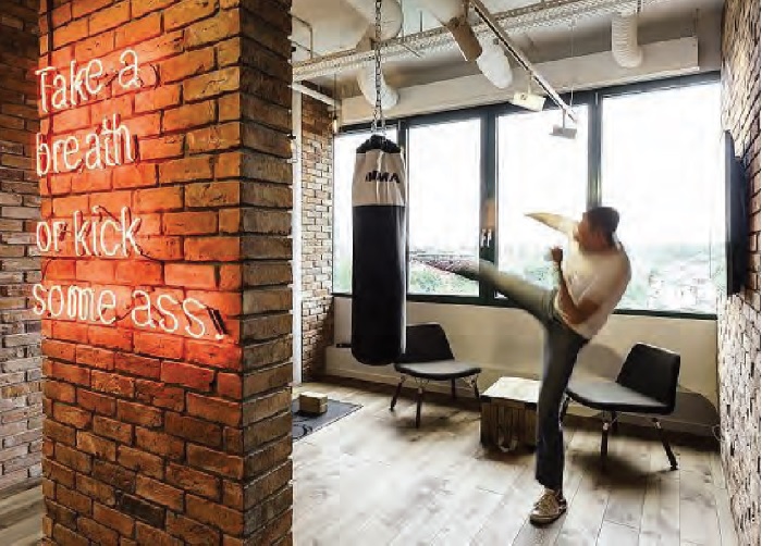 Kiedy mamy wyjątkowo ciężki poniedziałek, wystarczy założyć rękawice bokserskie i wyładować emocje na worku treningowym. A jeśli chcemy zabrać swojego pupila do pracy, można go zabrać do biura, jest mile widziany. Każdy centymetr przestrzeni został przemyślana pod kątem użyteczności i oferuje warunki z zależności od indywidualnych predyspozycji, rangi sytuacji, a nawet nastroju.