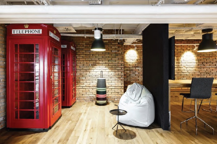 kreatywność swoich członków. Stąd mnóstwo nietypowych rozwiązań. Rozmowę telefoniczną możemy przeprowadzić w wyciszonej budce telefonicznej wzorowanej na londyńskim klasyku, lub w wagoniku kolejki górskiej. Biznesowe spotkanie odbyć w nowoczesnej sali konferencyjnej