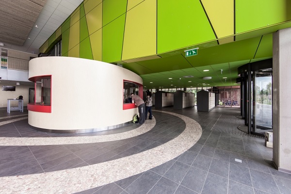 Jak ważna jest kolorystyka wnętrz w obiektach użyteczności publicznej łatwo przekonać się oglądając realizacje, w których inwestor i architekt nie bali się wybrać rozwiązania nieszablonowe. Jak np. w Houtens School w Holandii. Projektanci z pracowni BBHD wprowadzili do pomieszczeń żywe kolory zieleni na suficie i ścianach. Soczysta zieleń płyt akustycznych Rockfon sprawia, że wnętrza szkoły napełniają energią. Dodatkowo odpowiednie zaakcentowane barwą pozwoliło wskazać umowne granice pomiędzy poszczególnymi częściami budynku.