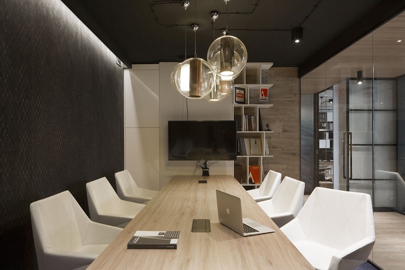 Dużo jest tu także szkła – sale konferencyjne i miejsca spotkań podzielono ścianami wykonanymi z jego dużych tafli. Szklane są także drzwi prowadzące do pomieszczeń, w których pracują poszczególne zespoły firmy Tremend. Projektanci zaaranżowali także miejsca do pracy wspólnej – oddzielone od pozostałej częci pomieszczenia specjalnymi dividerami w postaci biblioteczek, wypełnionych książkami z fachową literaturą lub szklanych naczyń z zielenią.