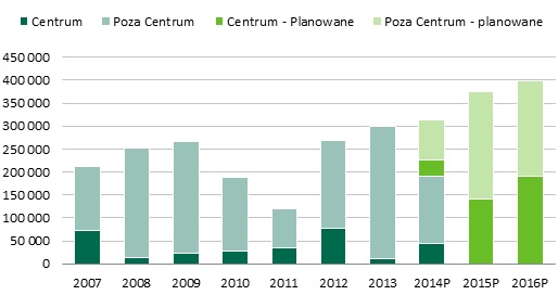 Źródło: CBRE / WRF, 2 kw. 2014, P -planowane
